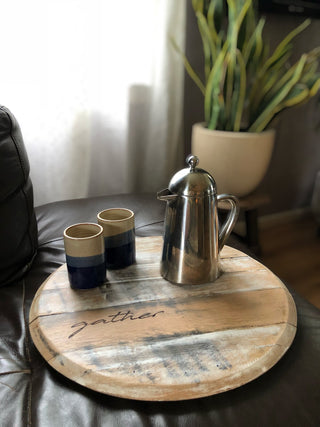Distressed Black Authentic Bourbon Barrel Head Tray